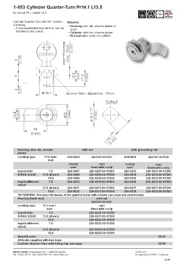 Cylinder Quarter-Turn with fixing clip, see page 02.18