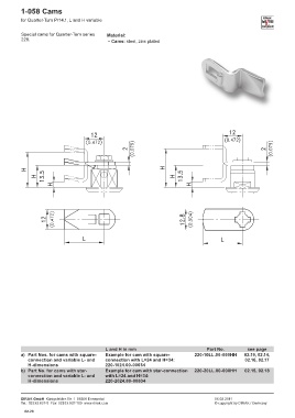 a) Part Nos. for cams with square- Example for cam with square- 220-10LL.00-000HH 02.19, 02.14,