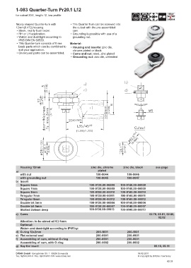 • On request parts can be assembled. • Cams and nut: steel, zinc plated